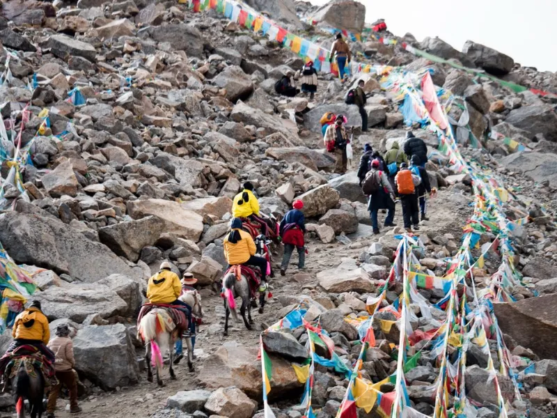 Meals Breakfast, Lunch & Dinner Today, we cross Dolma La Pass, the highest point of the Kailash Mansarovar Yatra, surrounded by fluttering prayer flags and breathtaking Himalayan vistas. This section is the most challenging part of the trek, yet it offers profound spiritual and personal rewards. On the descent, we pass by Gauri Kund, a sacred lake associated with the legend of Goddess Parvati, adding to the sanctity and spiritual significance of the journey. Overnight at guesthouse.